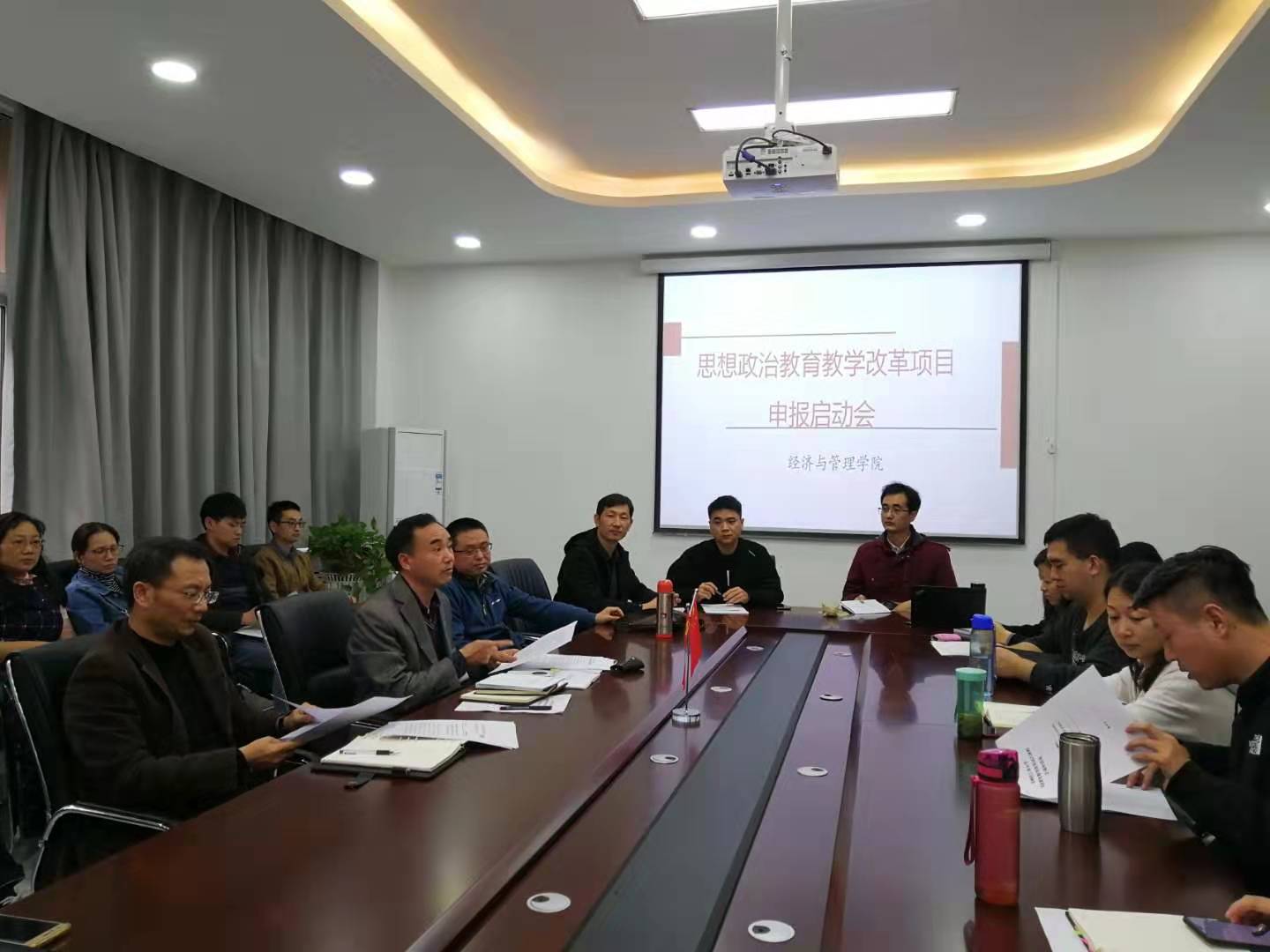 为了进一步推进经济与管理学院经管类专业课程思政教学改革,按照学校教务处启动思想政治教育教学改革项目申报的通知要求,经济与管理于2019年11月7日下午在经管楼219召开思想政治教育教学改革项目申报启动会,学院各系部主任、申报课程思政项目的教师代表参加了此次会议,会议由教学副院长仝新顺主持。