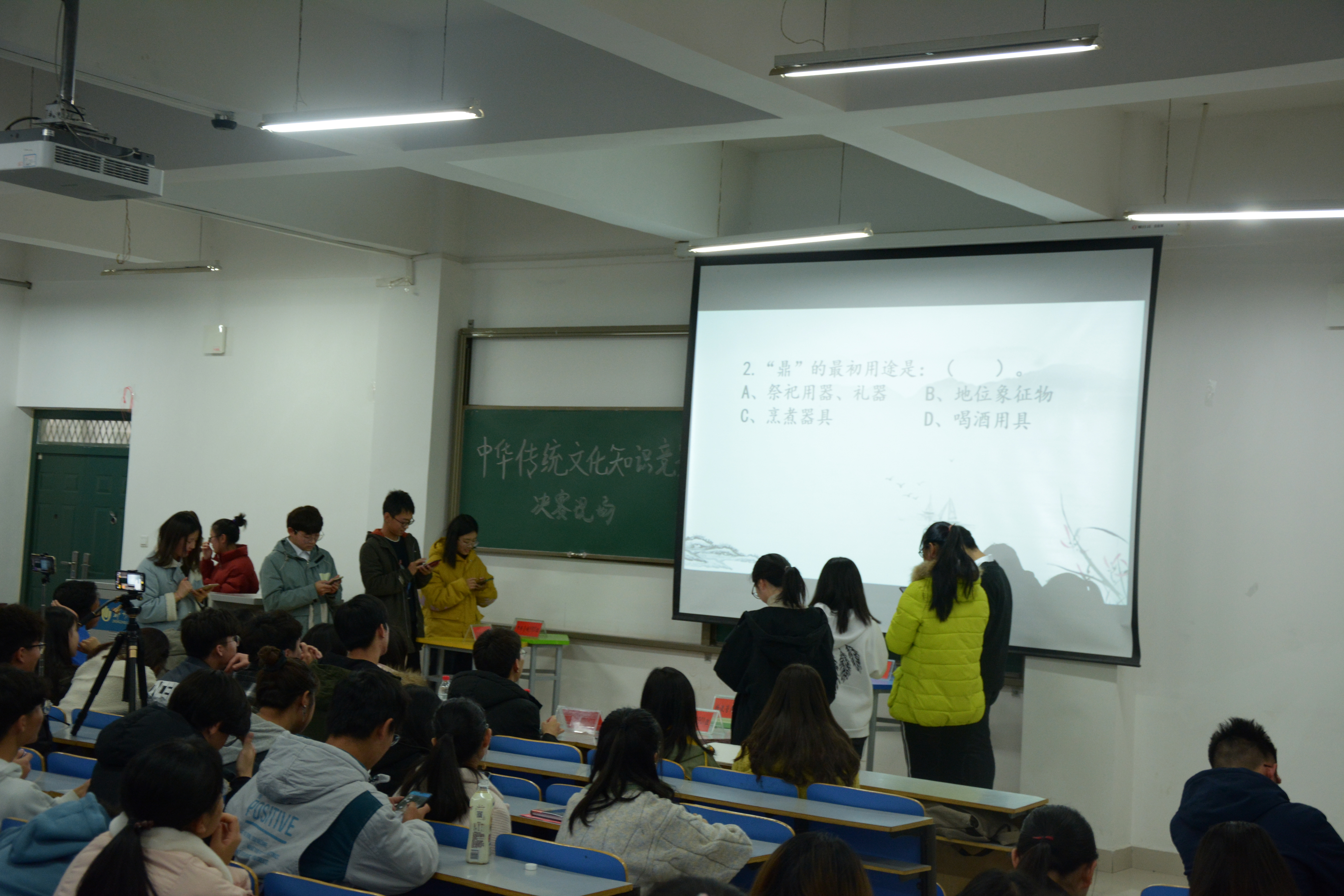 中国传统文化源远流长、博大精深,在数千年的积淀、传承和发展中,为中华民族提供生生不息、团结奋进的不竭动力,是当代大学生人文素质教育中的重要内容。因此,为加深学生们对传统文化的理解与认识,增强同学们对传统文化的兴趣,让全院学生能切实感受到传统文化的熏陶,经济与管理学院于12月12日在经管楼309室举办以“传承华夏文明·承传统文化”为主题的中华优秀传统文化知识竞答比赛,我院同学们积极地参与到此次活动中,展现自己对传统文化的理解,传承弘扬了中华优秀传统文化的精髓。