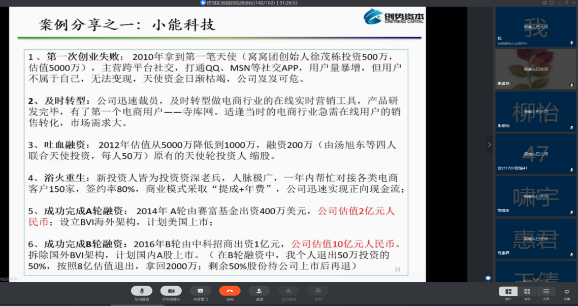 截止目前,第一次专家讲座邀请到了创势资本董事长,中国十大天使投资人之一的汤旭东董事长,就“如何提高创业成功率”作专题讲座,本次讲座通过案例分享,让学生对创业有了更清醒的认识。