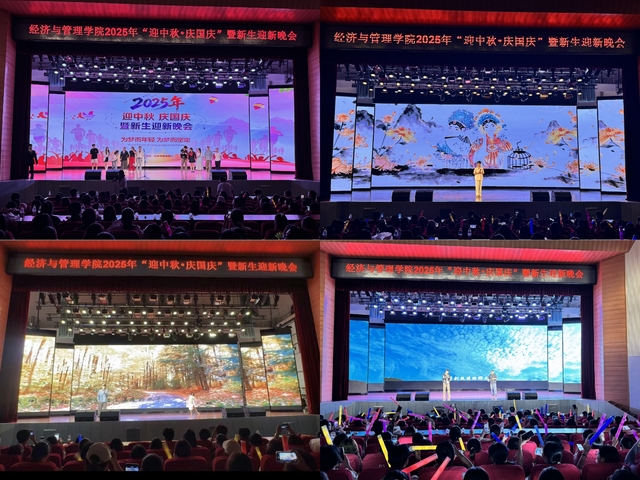 金秋送爽,双节临门。9月29日晚,经济与管理学院2025年“迎中秋·庆国庆”暨新生迎新晚会在东风校区大礼堂隆重举行。学院2025级新生辅导员、朋辈导师们和全体新生齐聚一堂,在璀璨灯光中共庆双节,在青春旋律中开启新篇。