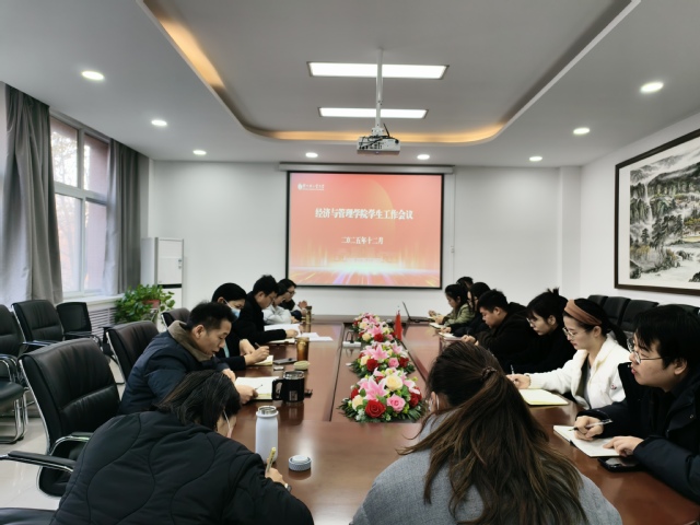 12月5日上午,经济与管理学院在经管楼219会议室召开学生工作会议。学院党委书记金亮、院长刘珂、全体专兼职辅导员参加会议。会议由学院党委副书记陈章美主持。