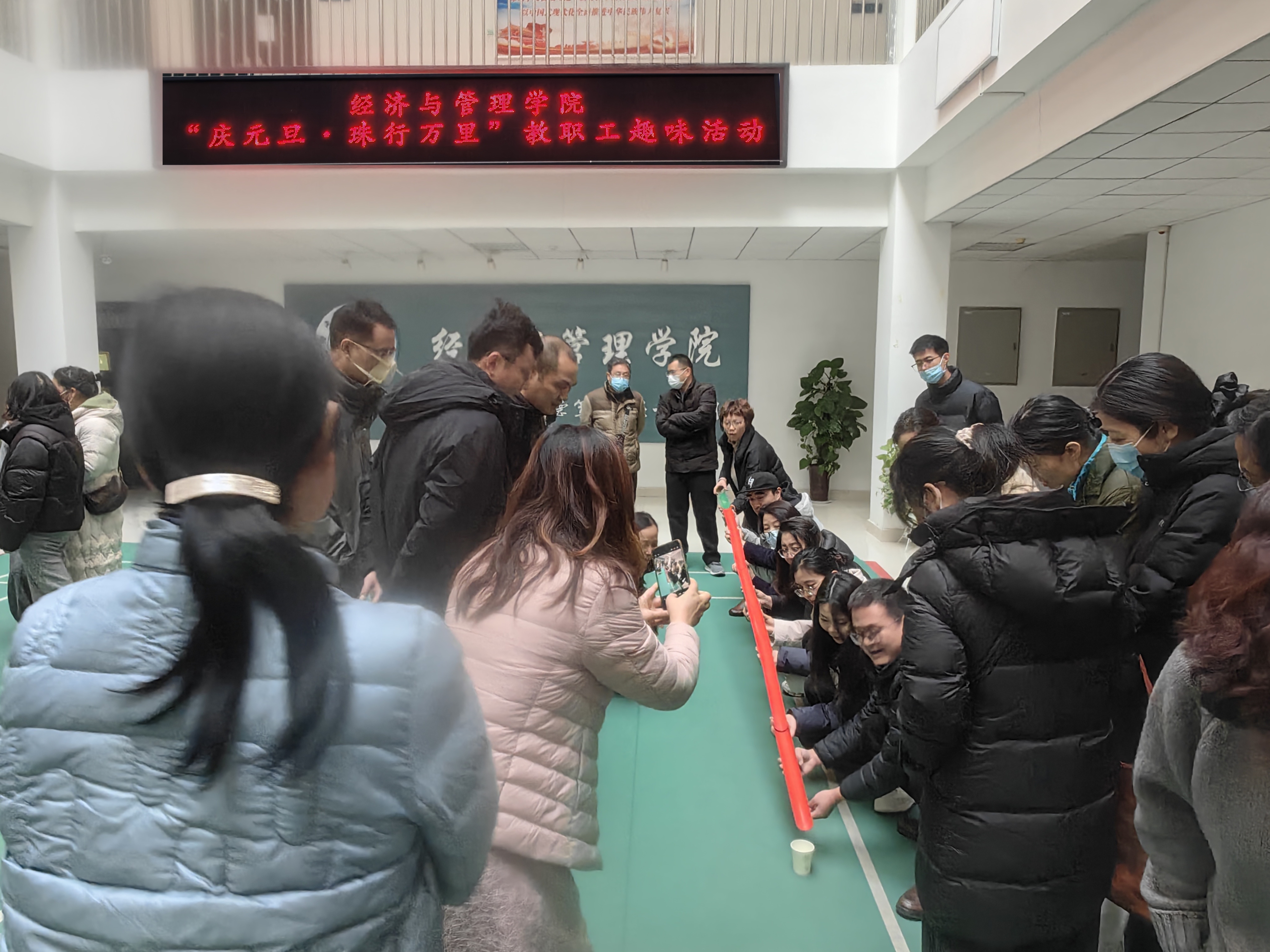 为迎接元旦佳节,丰富校园文化生活,增进教职工情感联系与团队凝聚力,12月25日下午,经济与管理学院工会举办了庆元旦教职工趣味活动。学院全体教职工踊跃参与,现场气氛热烈欢快。