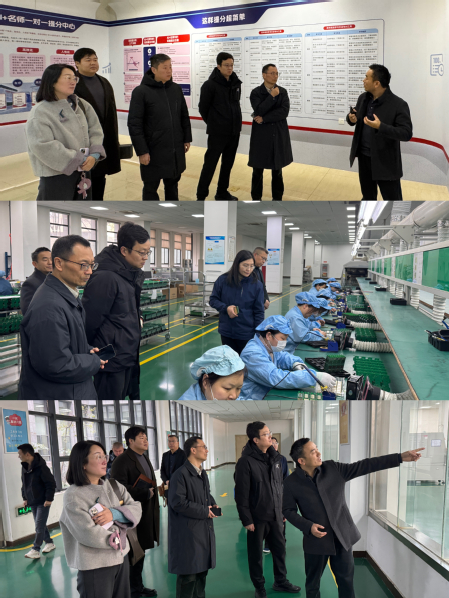 在公司负责人陪同下,学院一行实地参观了企业生产车间与研发中心,详细了解公司在智慧教育、北斗+5G智慧物联等领域的发展历程、核心业务及技术优势,并重点询问了企业在复合型人才招聘和跨领域项目协作等方面的具体需求。交流过程中,符加林院长系统介绍了学院学科建设成果,包括跨学科课程体系建设、实践教学创新模式以及复合型人才培养成效,充分展示了学院服务产业发展的育人能力。