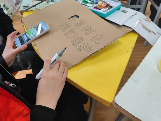 本次活动分为室内制作与户外实践两个环节。下午四点半,志愿者们率先在经管院207教室集合,利用废旧纸板精心制作环保提示,将环保理念融入每一块提示牌中。随后,志愿者们前往校园绿化带、草坪与花坛,开展户外护绿行动。大家分工协作,有的弯腰清理白色垃圾、烟头与杂物,细致清扫每一处角落;有的仔细排查绿地裸露区域,及时维护植被生长环境;有的耐心规整花草周边杂物,用心守护校园里的每一片生机。最后,大家将亲手制作的环保提示牌粘贴在醒目位置,呼吁师生共同爱护校园环境。活动尾声,志愿者们合影留念,用镜头记录下这份充满意义的志愿瞬间。