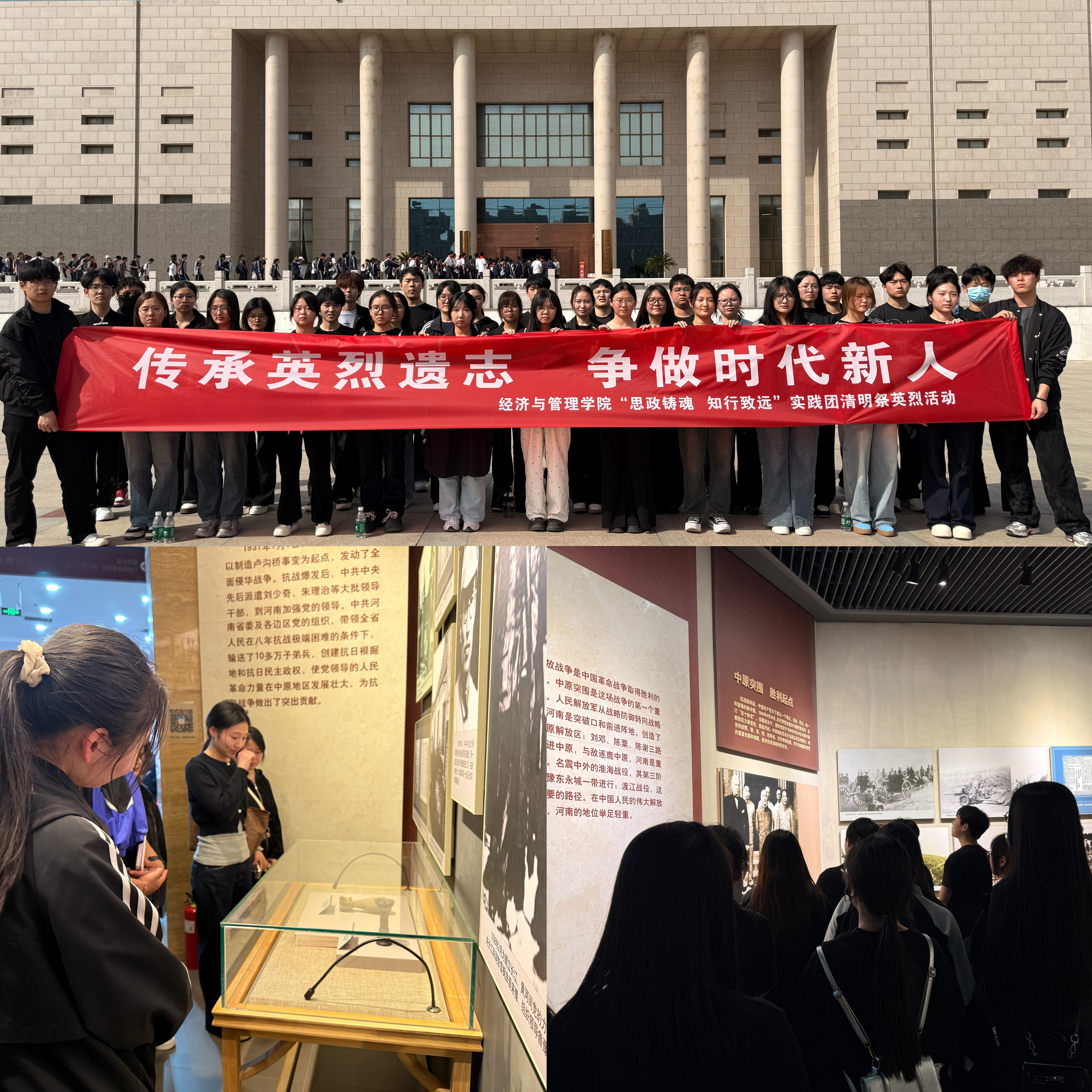 清明寄哀思,松柏祭英魂。为缅怀革命先烈丰功伟绩,传承红色基因,厚植青年学子家国情怀,推动思政教育与实践育人深度融合,4月3日,经济与管理学院“思政铸魂 知行致远”实践团前往中原英烈纪念馆,开展清明祭英烈主题实践活动。